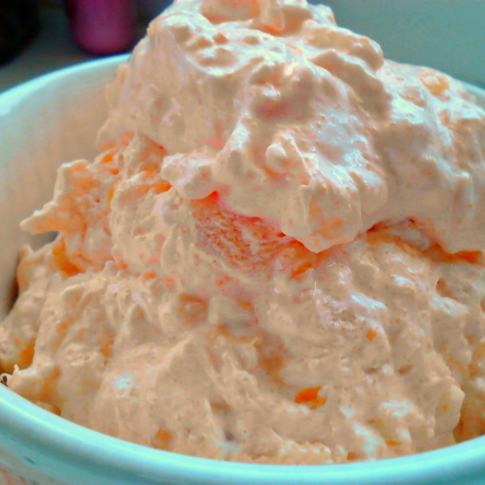 Pineapple And Mandarin yellowish-brown Jello Salad With Jello, Cottage Cheese, Crushed Pineapple, Mandarin Oranges, Cool Whip