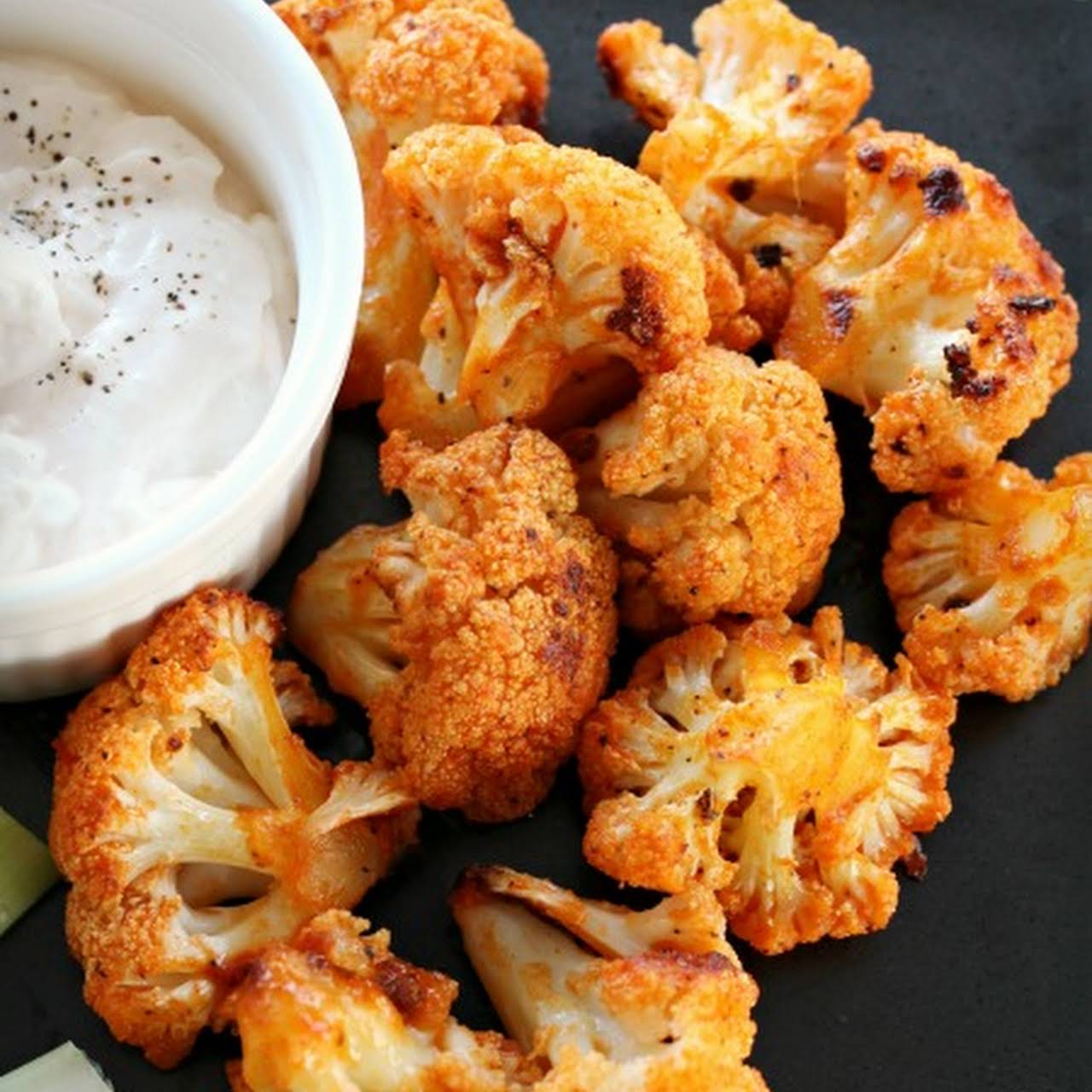 Cauliflower Buffalo Bites like Cauliflower, Olive Oil, Garlic Powder, Salt, Pepper, Melted Butter, Buffalo, Hot Sauce